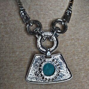 Navajo Style Statement Necklace Faux Turquoise Silvertone 20" Long