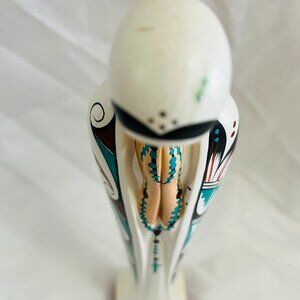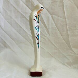 Vintage Hand Painted Navajo Southwest feather Virgin Mary Madonna Ceramic Figurine 13” Signed