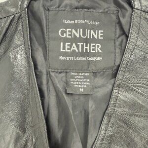 Navarre Genuine Leather Mens M Italian Stone Design Black Biker Motorcycle Vest