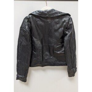 Navarre Leather Company Black Italian Stone Leather Jacket. Size Medium. Gently used, with some minor wear and fading; in great vintage condition. It has a button down front and a collar.