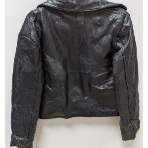 Navarre Leather Company Black Italian Stone Leather Jacket. Size Medium. Gently used, with some minor wear and fading; in great vintage condition. It has a button down front and a collar.