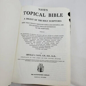 Nave’s Topical Bible By Orville J. Nave 1962 Imitation Leather Thumb Indexed Rare. Nave’s Topical Bible. A Digest Of The Holy Scripture. More Than Twenty Thousand Topics And Subtopics, And One Hundred Thousand References To The Scriptures. By: Orville J. Nave, A.M., D.D., LL.D. Copyright: 1962. Thumb Indexed. Rare. PUBLISHER: The Southwestern Company, Nashville, Tennessee. Large Imitation Leather Paperback. Printed In The United States.