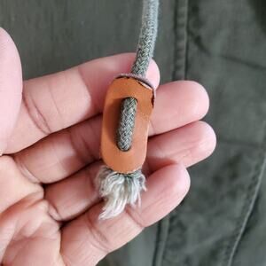 Navie bat wing canvas jacket with button up closure, hood and pockets on the side.This jacket is pre-loved with a small pull away from the pocket. Otherwise, this jacket is super cute, ready for its new home, and comes from a smoke and pet free environment.