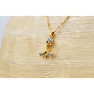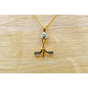 Navika Pendant Necklace Golf Clubs Gold Tone Chain Vintage Elegant Signed BinM
