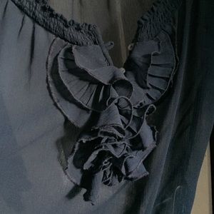 Abercrombie Kids blouse. Will probably fit someone who wears a petite XS or S in Ann Taylor. Really pretty front ruffle and 3/4 length sleeves.