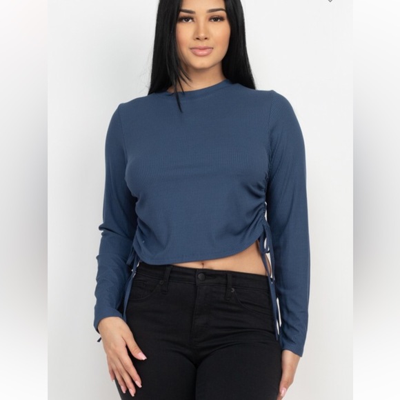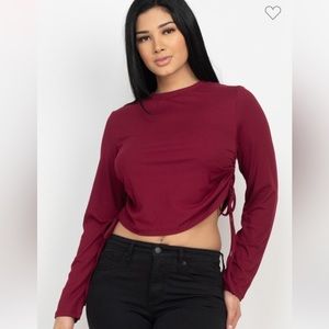 Casual look that’s easy to pair and wear. Stretchy lightweight material with ruching on both sides so you are able to make it as short or long as you want. Also comes in a cranberry color as shown above.