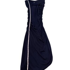 Navy Ankle Length Dress w/Shirred Sides and Chain Back
