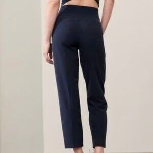 These size 6 Navy pants are perfect for commuting, work, and travel. This refined fabric is subtly textured, and perfectly stretchy with a waistband that is buttery soft and "holds you in" all day comfortably.