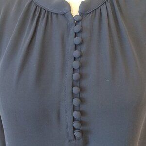Purchased new but only worn only a handful of times. In excellent condition. Very pretty color. Really love the covered button detail and the wide sleeves, but I don't generally wear blue tops so I'm downsizing.