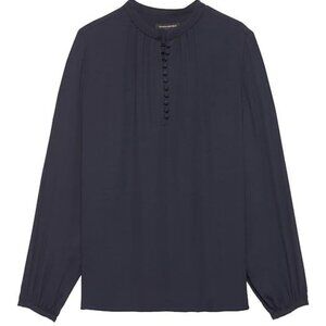 Navy Banana Republic Button-Front Bishop Sleeve Blouse