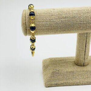 Navy Bead Station Bracelet Bright Gold Tone North Star and Cross Charms Holiday