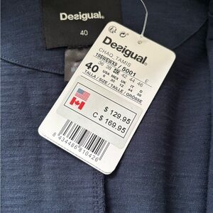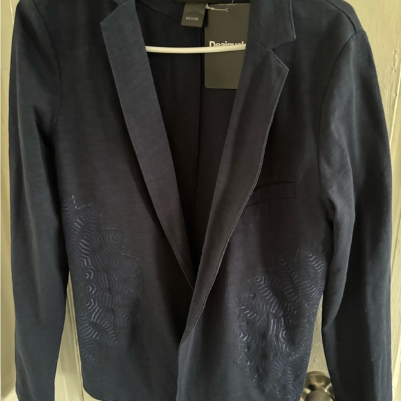 Stylish navy Desigual cotton blazer featuring a subtle geometric pattern. Perfect for formal or casual occasions. Very comfortable and versatile!