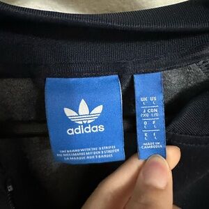 Navy Blue Adidas Track Sweater. 3 white stripes on sleeves. Bought from the adidas store. Original.