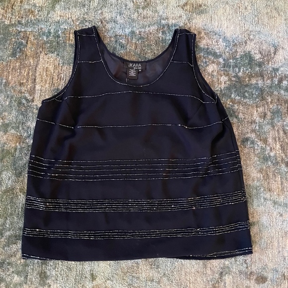 Size 18 new with tags Stored in dress bag in closet PERFECT CONDITION!!! Lovely holiday top in navy blue.