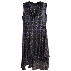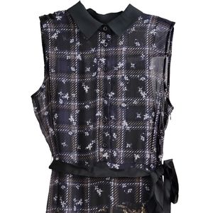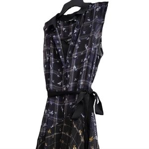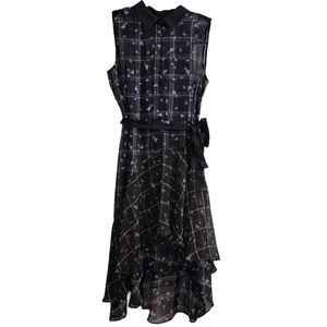 Navy Blue & Black Plaid Midi Ruffle High Low Butterfly Peter Pan Collar Size Med