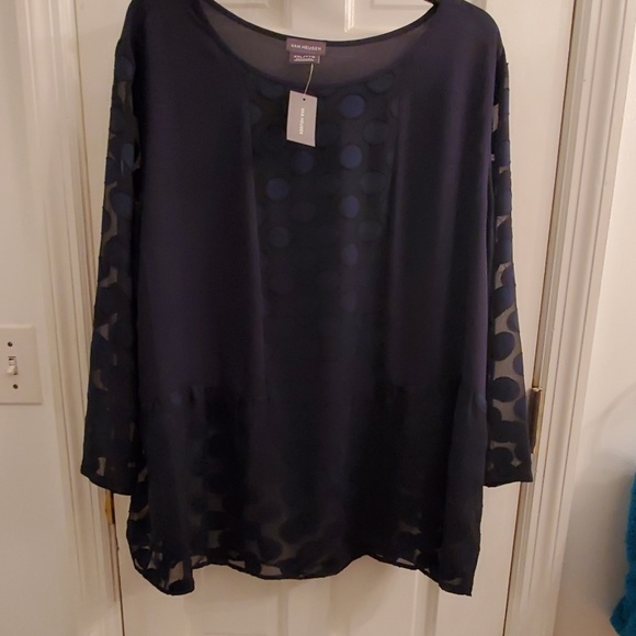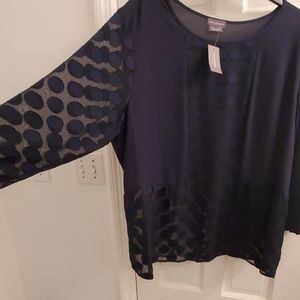 Brand new navy blue blouse with dots. Nice for professional or casual wear!