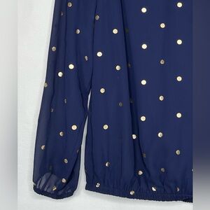 Navy Blue Blouse Metallic Gold Polka Dot Women's Top Chiffon Lattice Sz 1X