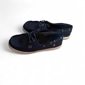 Navy Blue Bobs slip on boat shoes from Skechers. Women's size 9.