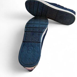 Navy Blue and white Bobs slip on boat shoes from Skechers. Women's size 9.