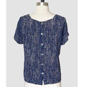 Navy Blue Bubble Print Button Back Square Neck Tee, Medium NWT