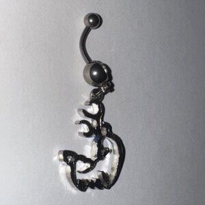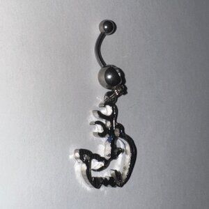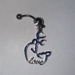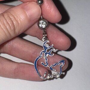 This belly ring is just straight steel with a Navy Blue Buck and Doe design at the bottom with the word Love.