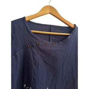 Navy Blue Button Detail Top Women’s Plus Size Dandelion Print Casual Tunic Tee