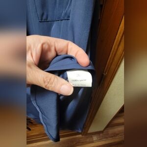 Navy Blue Button-Up Silky Feel Shirt 3xl