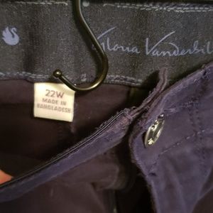Very comfortable elastic-waist fitting navy blue capris. Size 22 loose-fitting. There are a couple of fabric softener spots where it didn't rinse off. Like new.