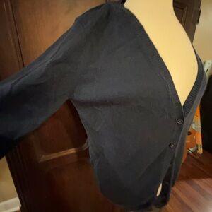 This navy blue cardigan sweater features a stylish V-neck design and long sleeves, offering a relaxed classic fit. Made from a soft knitted texture, it is perfect for layering and provides comfort for any occasion. New with tags from old navy.