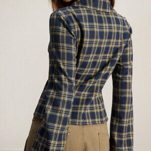 Navy Blue Casual Women's Woven Plaid Long Sleeve Single-Breasted Shirt