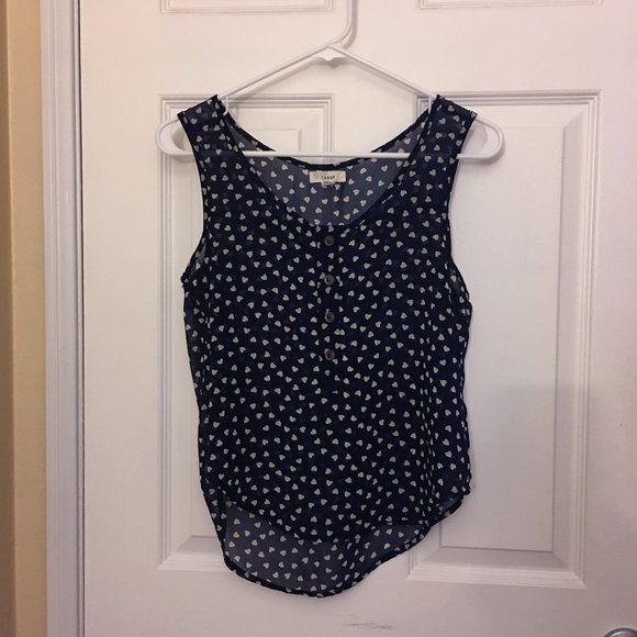 Navy Blue Chiffon Flowy Heart Hi-Lo Blouse Top
