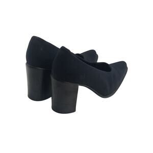 Vintage Via Spiga navy blue with black chunky heel pointy toe high heels. Elastic stretchy upper shoe.