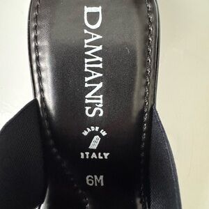 These navy blue sandals made in Italy boast a sleek, minimalist design with two wide horizontal straps for a modern look. They are new without flaws.