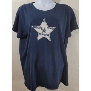 Navy Blue Dallas Cowboy Rhinestone Shirt Large Lightweight Soft Short Sleeves