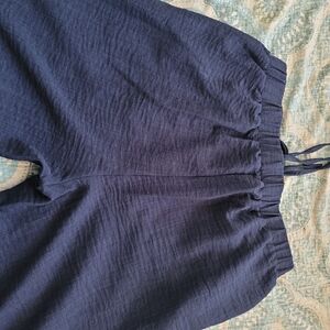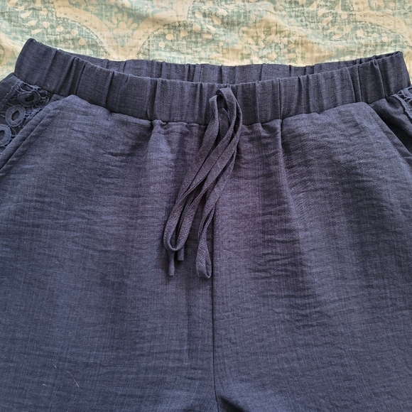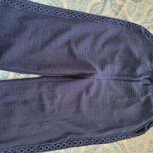 Comfortable navy blue pants with a drawstring waist. Perfect for casual wear.
