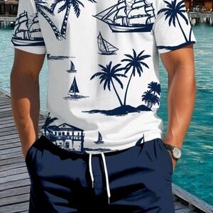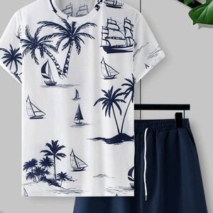 Stylish navy blue shorts with a white drawstring t shirt . Perfect for casual outings.new 2 pc