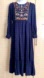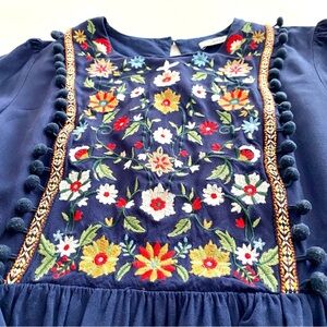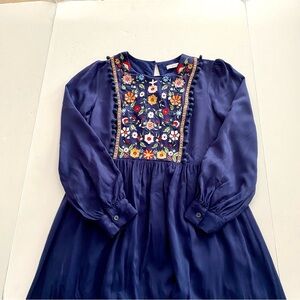 Navy Blue Embroidered Dress Sz Medium Floral Boho Long Sleeves Tiered Elastic