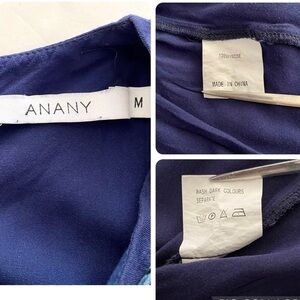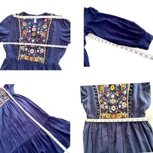 ANANY Navy Blue Floral Embroidered Midi Maxi Dress Sz Medium Boho Long Sleeves Spring Cottagecore