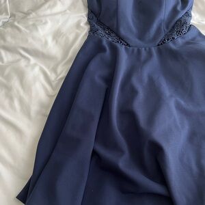 Navy Blue Fit & Flare Juniors Dress – Size 1, Lace Cutout Sides, Formal Look