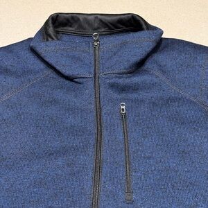 This navy blue vest is crafted from cozy fleece, offering warmth and comfort with its stand-up collar and sleek design. Its classic style makes it a versatile layering piece for any occasion. Chest 44”