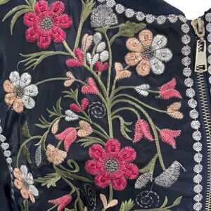 Navy Blue Floral Embroidered Long Sleeve Bomber Style Jacket Full Zip Sz Medium