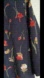 Lovely navy blue blouse featuring a delicate floral print with red, white, and beige flowers. Lightweight, flowy fabric with a classic button-up front and sleeves that hit just above the elbow with elastic cuffs. Missing one button (easy to replace).