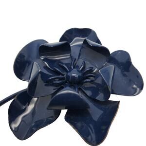 Great, vintage flower brooch. The dark, navy-blue brooch is large. It is unsigned.