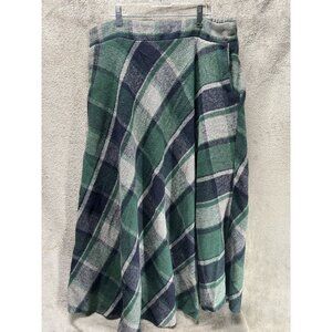 Navy Blue Green Tartan Women’s XXL 2XL Plaid Wool Blend Long Maxi Skirt Lined