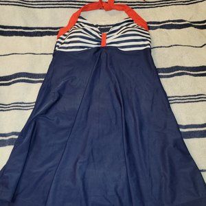 Striped Two-piece Halter Swim Dress