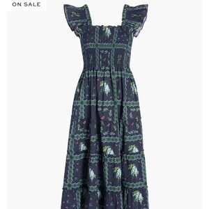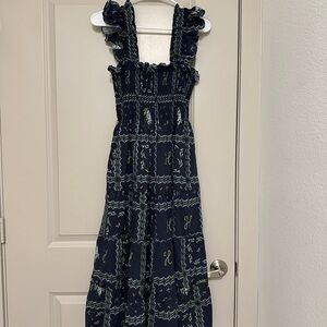 Elegant navy blue Hill House nap dress with a unique pattern. Perfect for any occasion. Size small. Worn once and cleaned. Fast free shipping.