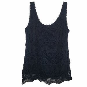 Cute layered crochet tank top. Size L. Approximate measurements are pit to pit 19". Length is approximately 28". Good condition. Cute navy blue.
