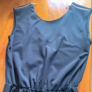 Long pant navy blue jumpsuit. Thick tank top style on stop with sippers on the shoulders.