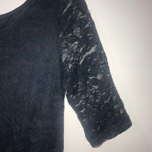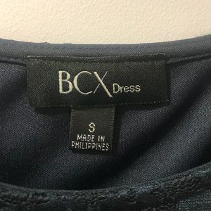 Long sleeve, above the knee, navy blue dress. Super stretchy and flowy.