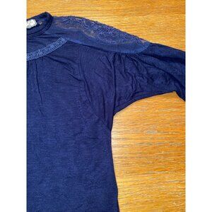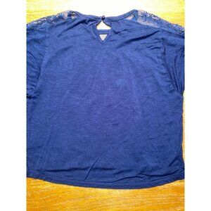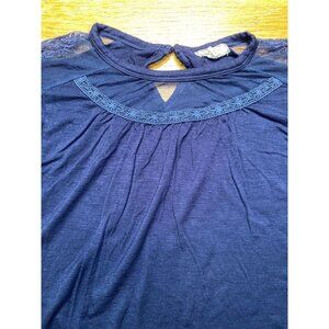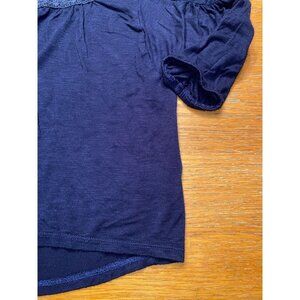 Navy Blue Lace Trim Girls Top With Keyhole Back Design
